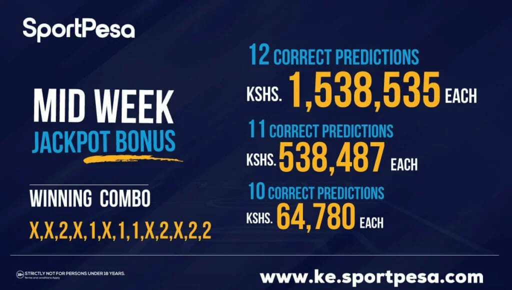 - 15/15 Jackpot: You are required to predict 15 games correctly and win 40.000.000 KES
